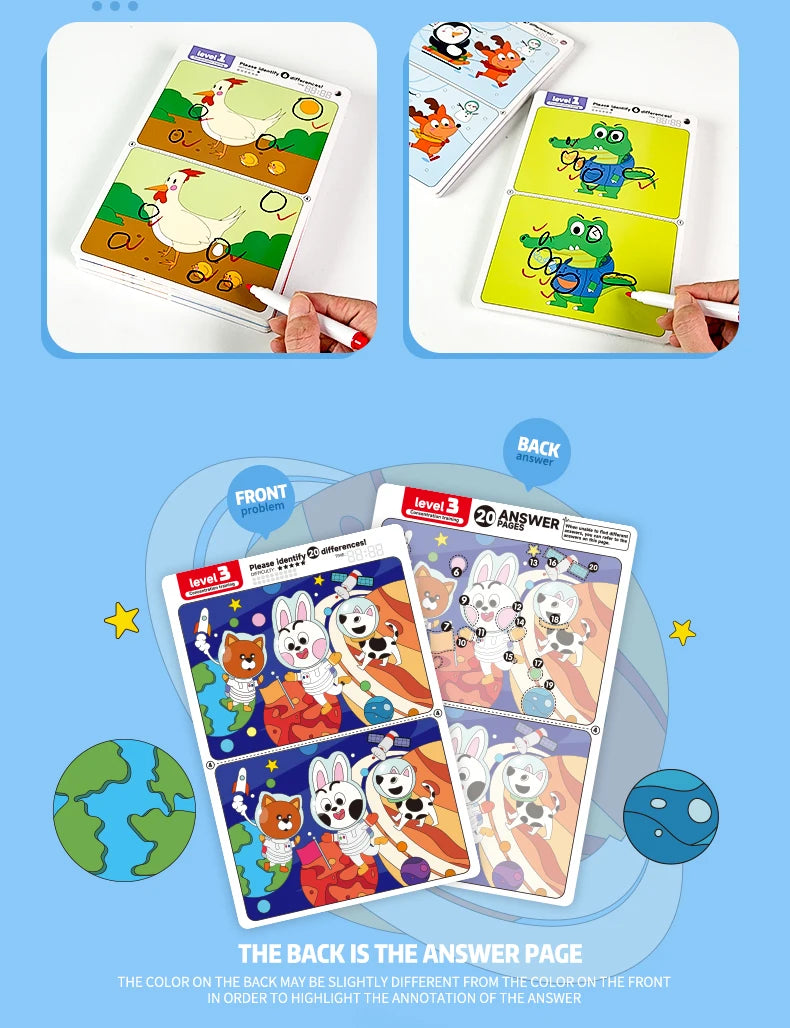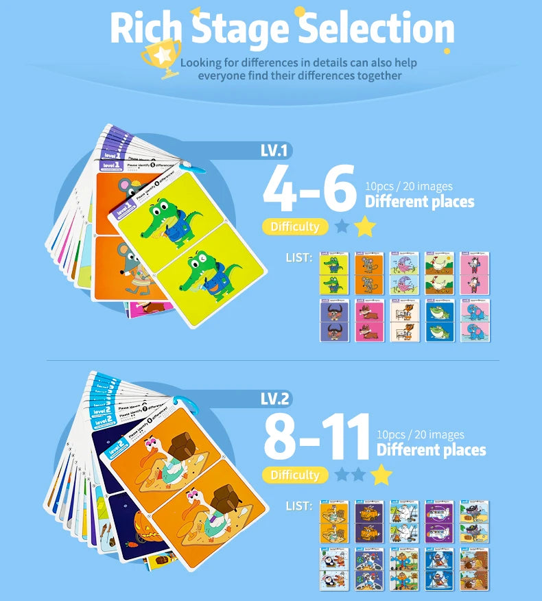 • Développement des compétences cognitives : En comparant deux images presque identiques, l’enfant exerce sa mémoire visuelle, sa concentration et son sens du détail.