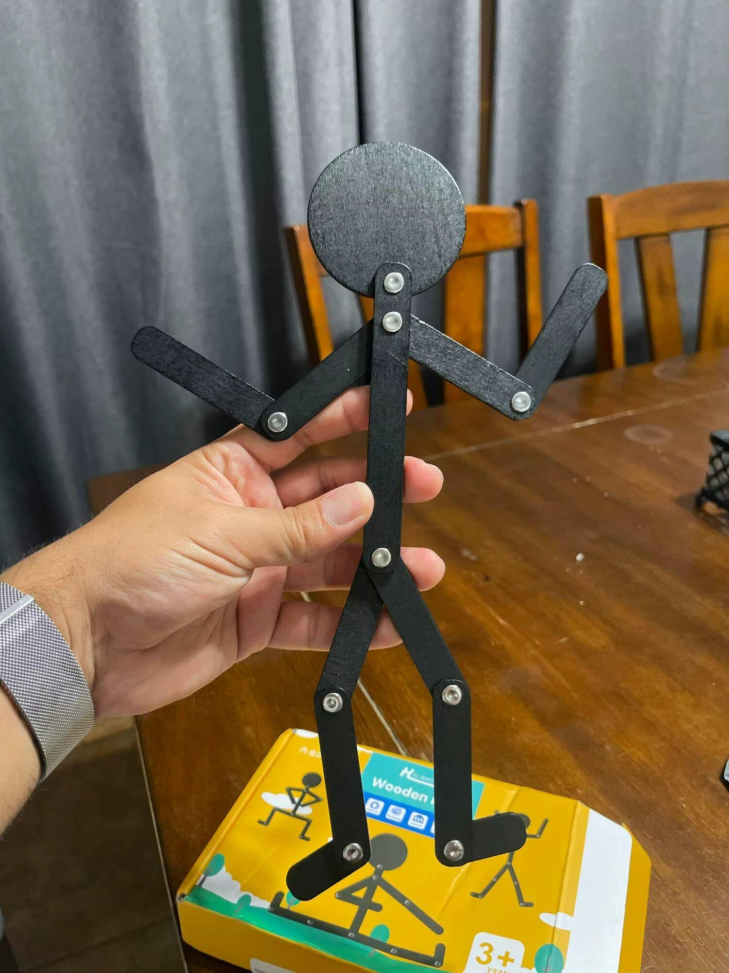 • Coordination et motricité fine : En manipulant les différentes parties articulées de l’homme en bois, l’enfant affine ses gestes et renforce sa précision visuelle et motrice.