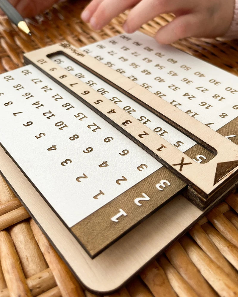 Faites des mathématiques un jeu d’enfant avec Multiplication Coulissante, une planche en bois ingénieuse qui rend l’apprentissage des tables de multiplication visuel, interactif et amusant. Conçu selon les principes Montessori, cet outil pédagogique transforme les chiffres en découvertes ludiques, tout en développant l’autonomie des enfants.